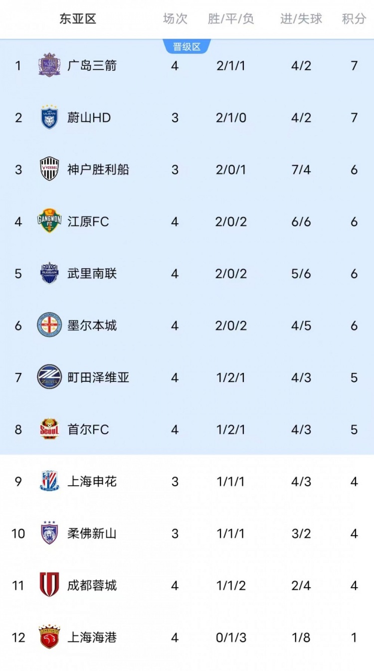 此外,淌若神户今晚慑服蔚山的话,那么J联赛球队则将包揽亚冠精英联赛积分榜前两名。