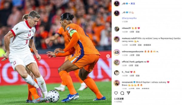 重夺队长袖标带队客平劲敌!莱万社媒晒对位范迪克比赛照:1-1!