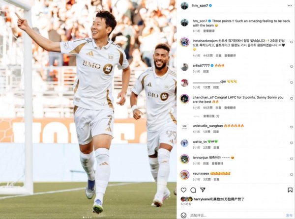 9月14日讯 好意思职联,洛杉机FC客场4比2打败圣何塞地震。其中孙兴慜开场54秒闪击首开记录。赛后,孙兴慜更新社媒抒发了赢球的抖擞。 孙兴慜社媒写说念:拿下3分,总结球队的嗅觉太棒了😄......查看更多