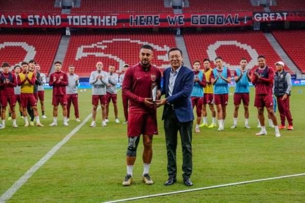在中超联赛第25轮海港队客场对阵北京国安的比赛中,莱昂纳多演出“帽子戏法”,匡助球队获取顺利。凭借这一优异推崇,他获评当轮最好球员。 在中超联赛第26轮的比赛中,海港队员李帅迎来了他代表俱乐部出战各项赛事的第100场比赛,解锁其个东说念主百场里程碑。 今天的官方磨练运行前,俱乐部为两位球员举行受奖典礼。俱乐部总司理沙良昌为莱昂纳多颁发第25轮最好球员奖杯,为李帅调停百场操心球衣。 感谢二位球员在绿茵场上的全力拼搏与不懈付出,也期待他们不息保抓腾贵斗志,与海港全球庭并肩前行,共......查看更多