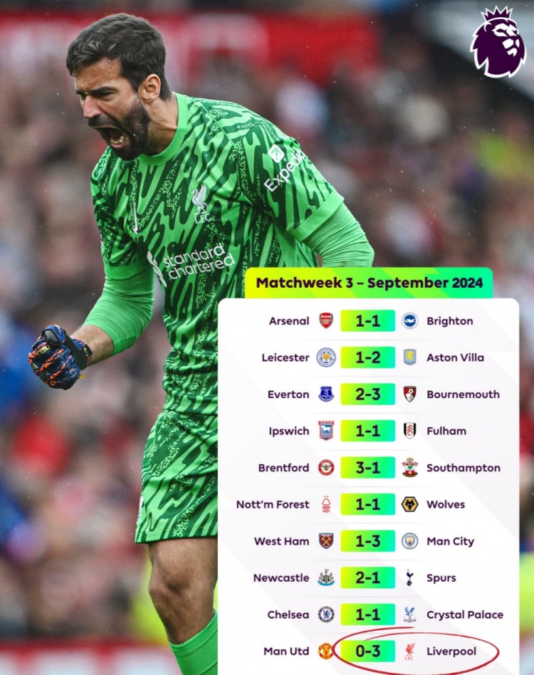 据统计,英超上一次出现一轮比赛唯有1支球队零封还是在2024年9月,上赛季第3轮利物浦3-0打败曼联,成为当轮惟一零封球队。