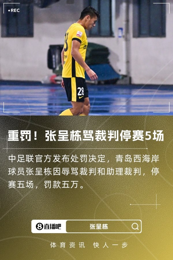 重罚!中足联官方:张呈栋曲直裁判禁赛五场,罚金五万