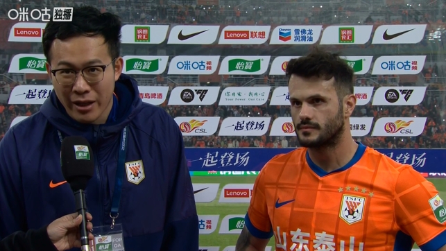 11月01日讯 中超第29轮,山东泰山2-1驯顺天津津门虎,卡扎伊什维利破门+失点,赛后他在接收采访时感谢了克雷桑的让点。