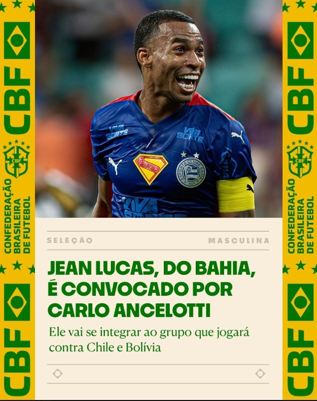 巴西国度队官方:因乔林顿受伤,补招巴伊亚中场让-卢卡斯