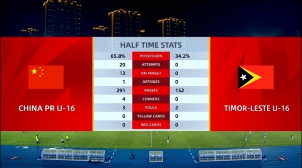透彻一边倒!半场数据:国少狂轰20脚进6球,敌手0射门