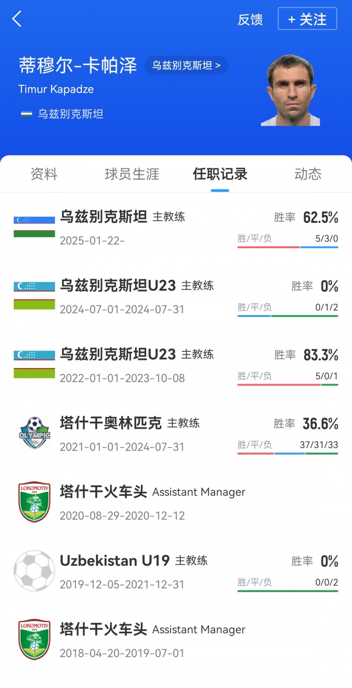 带队进全国杯下课?乌媒:乌兹别克斯坦原主帅卡帕泽往时不解确