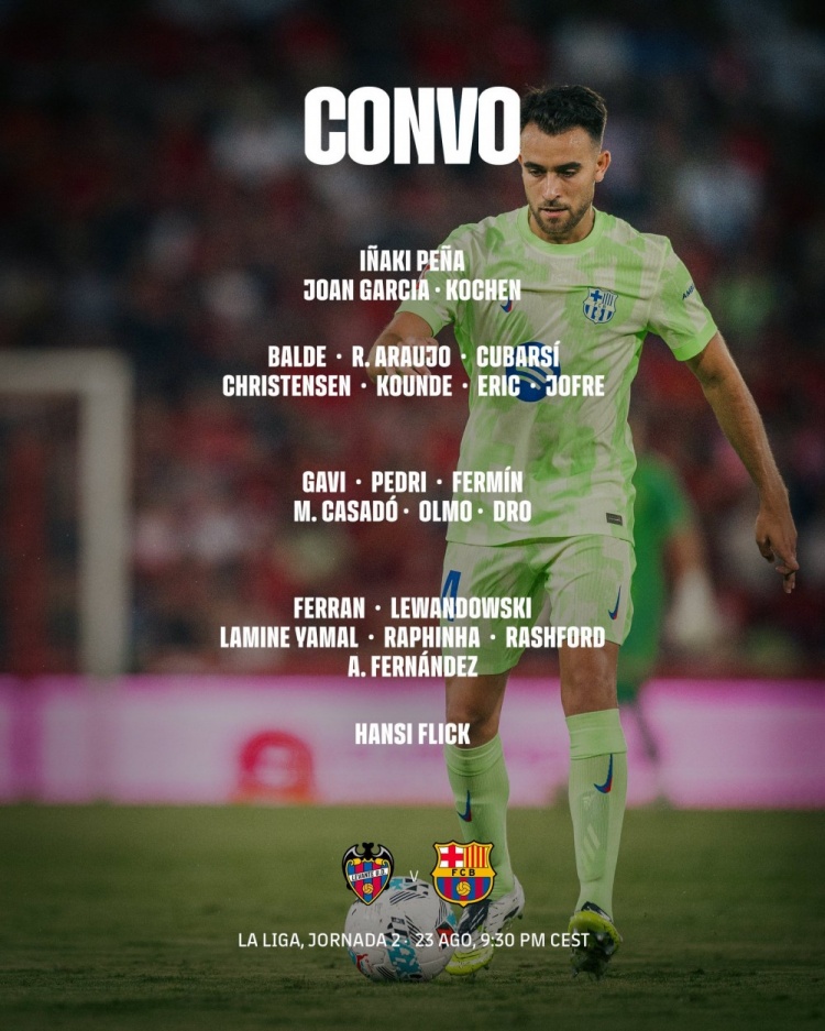 巴萨客战莱万特名单