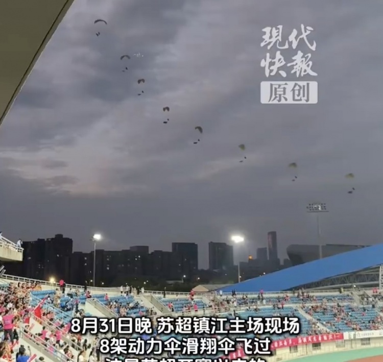 8月31日讯 据《当代快报》报说念,今晚苏超镇江主场现场,8架能源伞飞过,这是苏超开赛以来的初度能源伞遨游扮演 ,亦然镇江体旅交融的新样式。