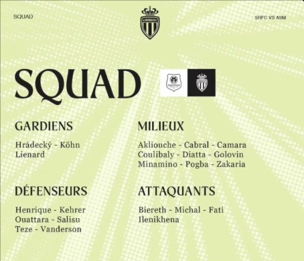 摩纳哥客战雷恩大名单:法蒂领衔,博格巴初度入选